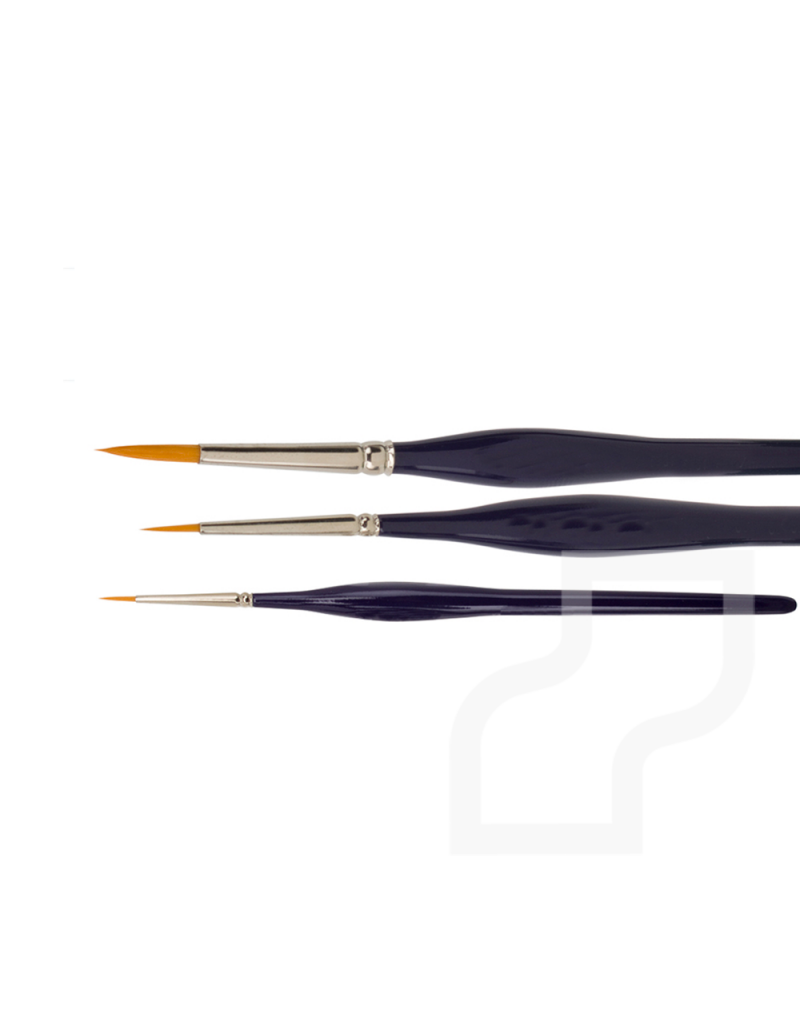 Pincéis Kolibri de cerdas sintéticas, uma imitação de cerdas de cetim. Ideais para artistas que preferem pelos sintéticos com pontas finas e uma ótima elasticidade, para a criação de detalhes.