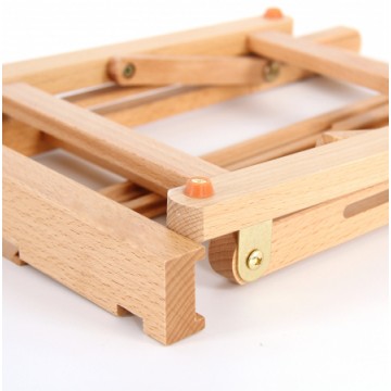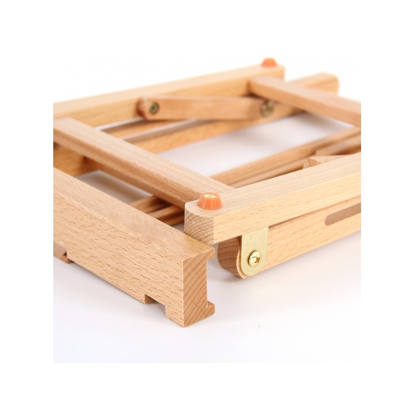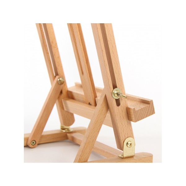O Cavalete de Mesa Mini +Art, é construído em madeira faia e apresenta um acabamento envernizado. Dobrável para uma prática arrumação, este cavalete é facilmente transportável e tem o tamanho ideal para trabalhar em cima da sua mesa de trabalho.