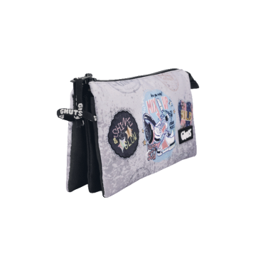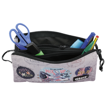 Este estojo tem três compartimentos, é um acessório completo que oferece muito espaço para guardar canetas e lápis. O seu fechamento permite transporta-lo facilmente de um lado, para outro.