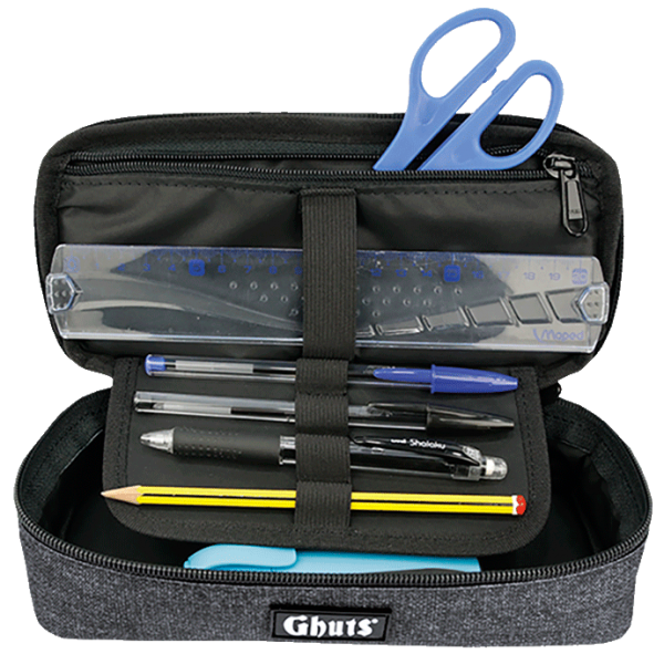 Este estojo tem três compartimentos, é um acessório completo que oferece muito espaço para guardar canetas e lápis. O seu fechamento permite transporta-lo facilmente de um lado, para outro.