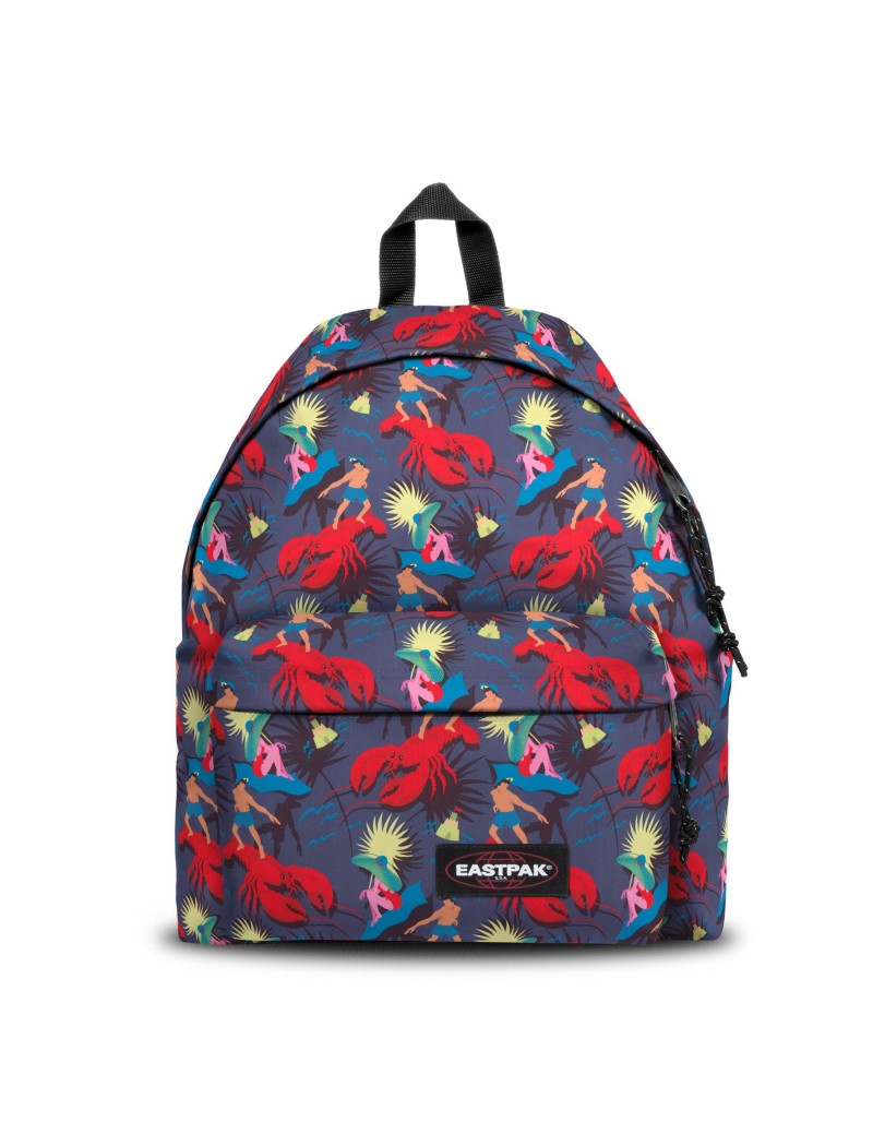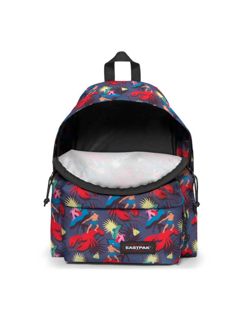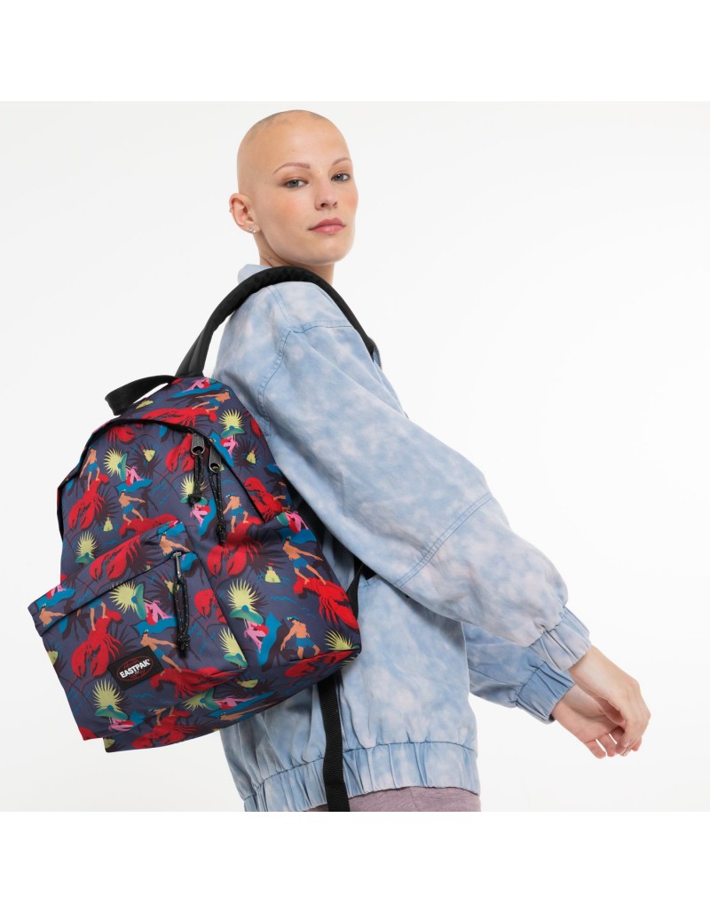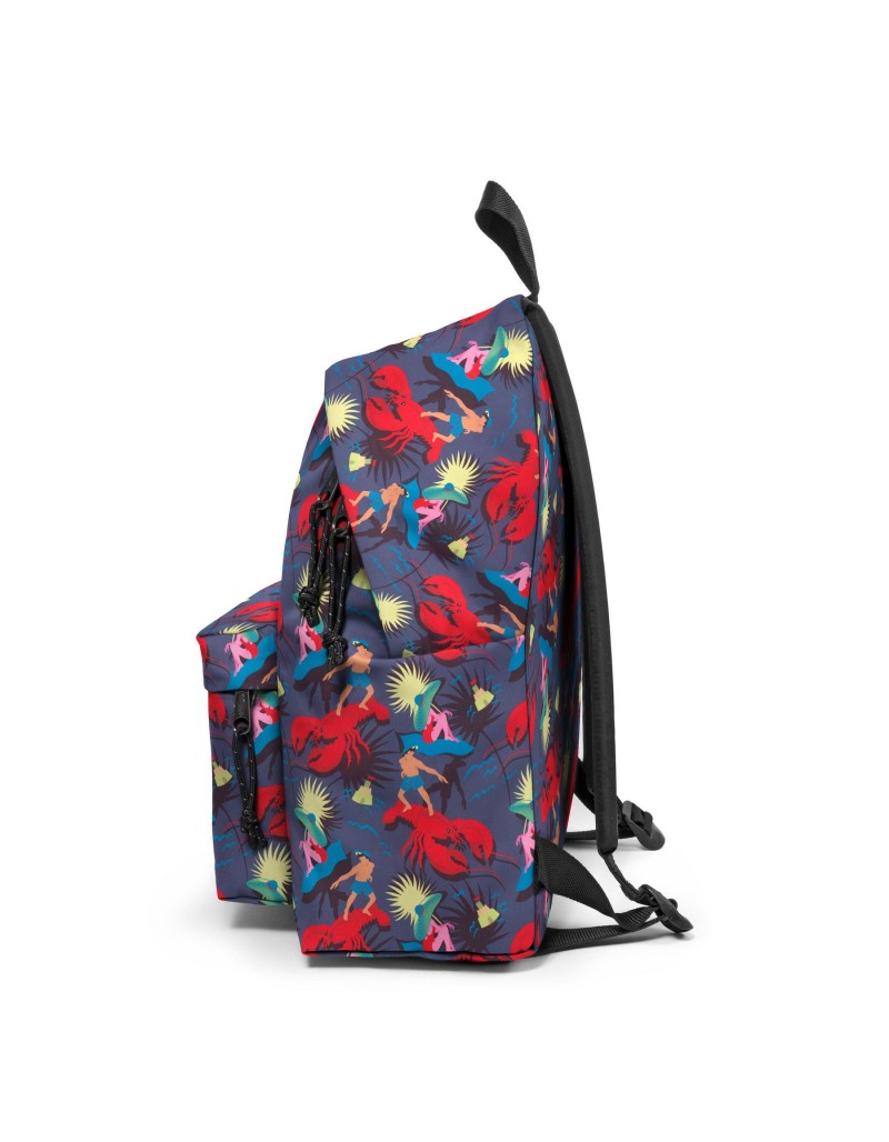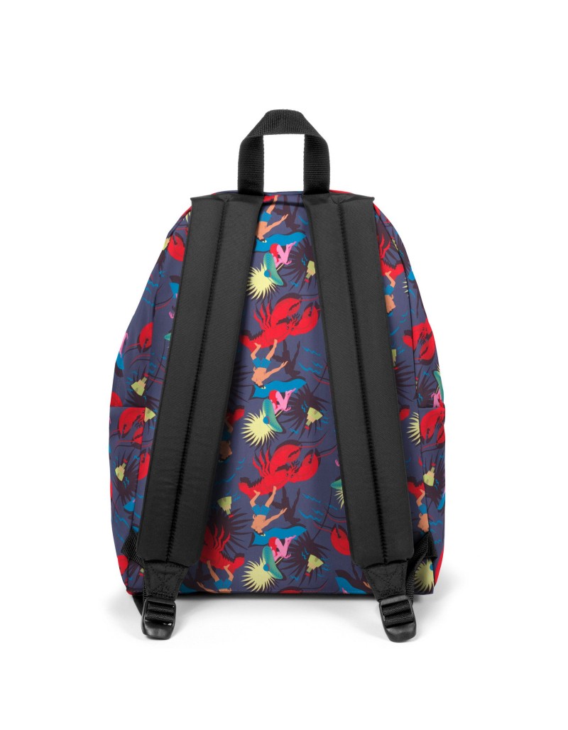 Mochila dupla compartimento pequeno com fundo reforçado, fitas laterais para ajuste de volume, sistema elástico frontal com inserções refletivas.