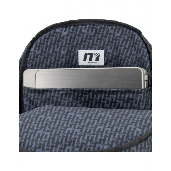 Mochila com reforço extra na base graças aos seus cantos de PVC personalizados com a coleção.