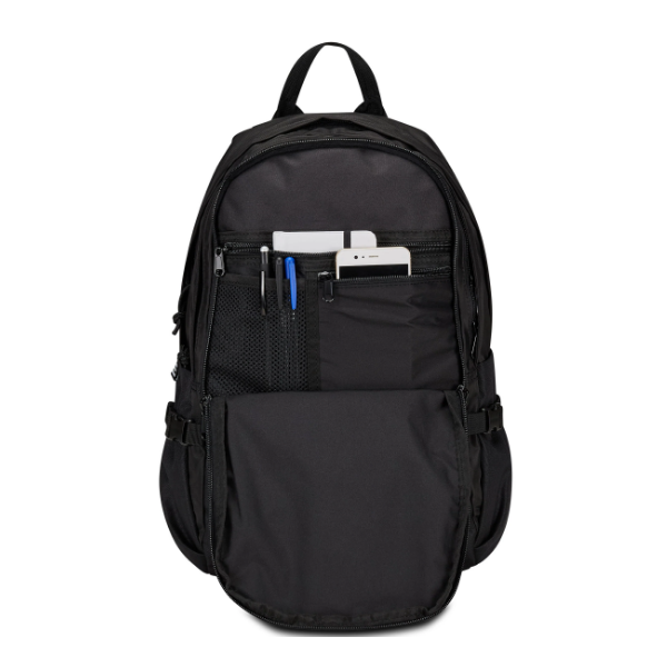 Ele também tem um bolso frontal de tamanho médio e dois pequenos bolsos nas laterais para guardar bebidas.