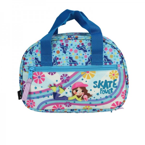 A nécessaire Skate tem fecho de correr, compartimento com grelha de retenção.