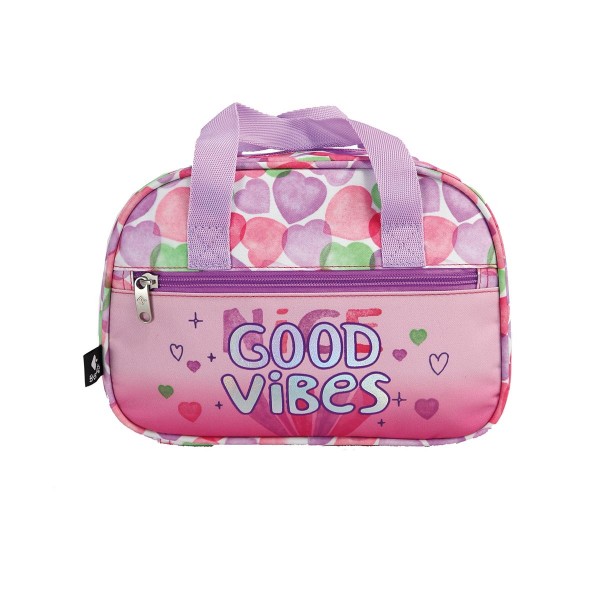 A nécessaire Good Vibes tem fecho de correr, compartimento com grelha de retenção.