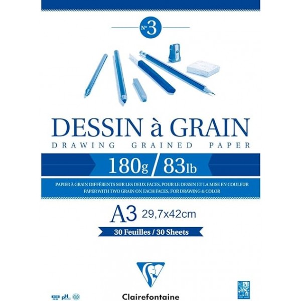 Papel com grão diferente nas duas faces, para desenhar e colorir.